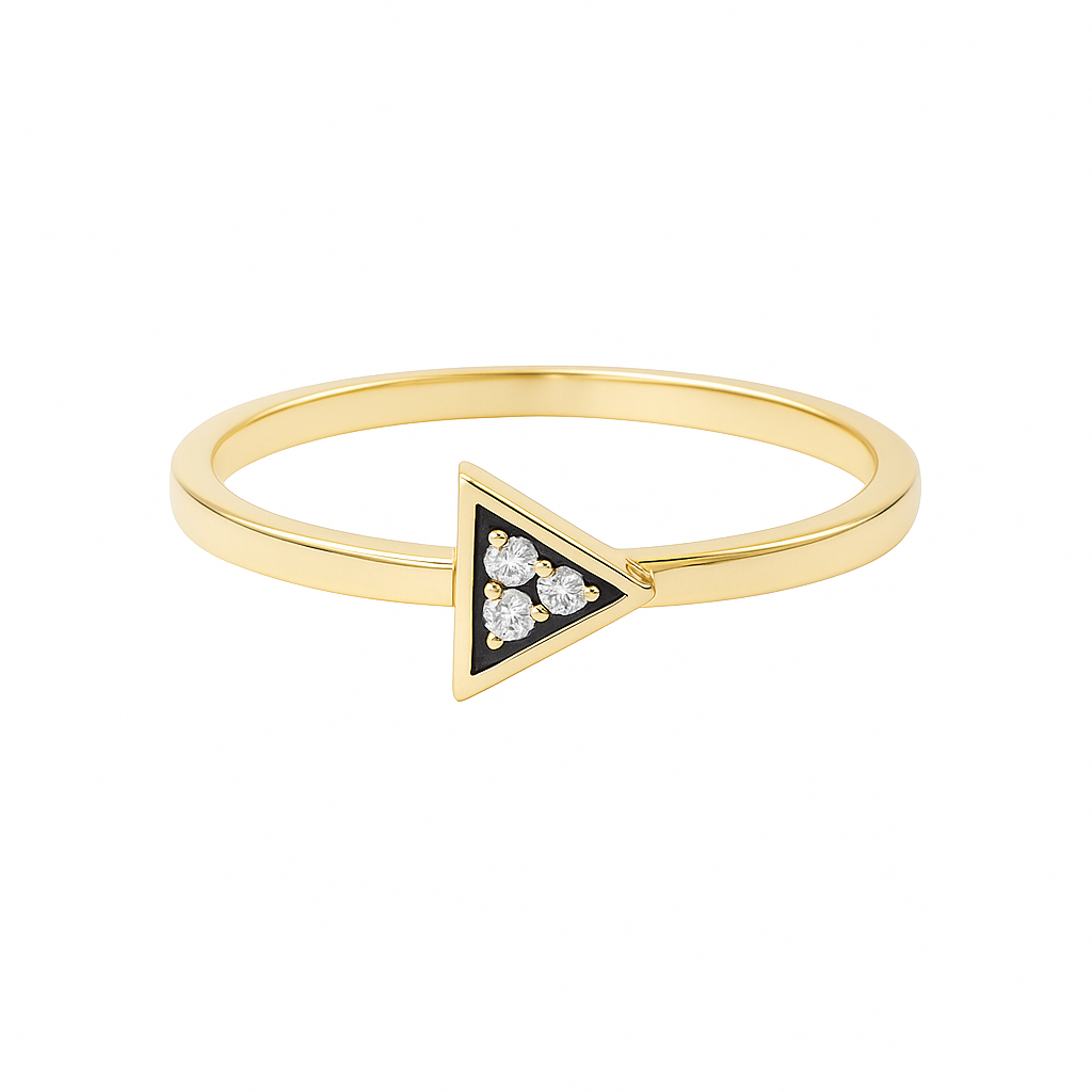 The TRION ring is a tribute to the eternity of the number three — a symbol of perfection, balance, and harmony. A golden line concludes in a triangle, where three delicate brilliant-cut diamonds come to life. Each one represents one of the three forces that guide us: the past, the present, and the future.