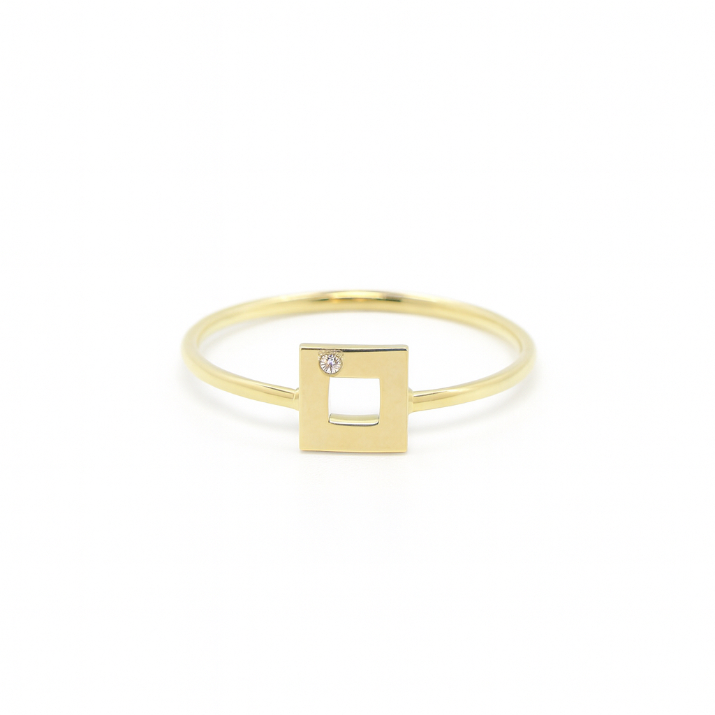 Minimalističen prstan, v katerem se preprostost prepleta z močjo simbola. V središču se lesketa kvadrat – popolna oblika reda, stabilnosti in ravnovesja, obogatena z drobnim diamantom, ki prinaša iskro svetlobe. Cubus je kot arhitekturna skulptura v pomanjšanem merilu – modernega značaja, a hkrati brezčasne lepote.