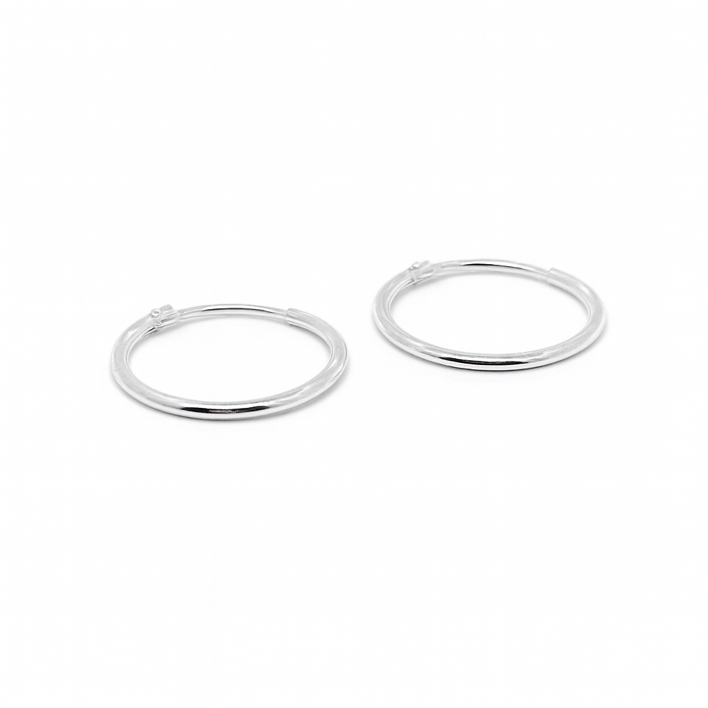 Ti elegantni srebrni obročasti uhani so preprosti, a hkrati prefinjeni,  kot nevsiljiv sijaj, ki dopolni vsako podobo. Njihova čista oblika in visok sijaj odražata brezčasno lepoto minimalizma, ki se zlahka zlije z vsakim slogom, od vsakdanje sproščenosti do večerne elegance.